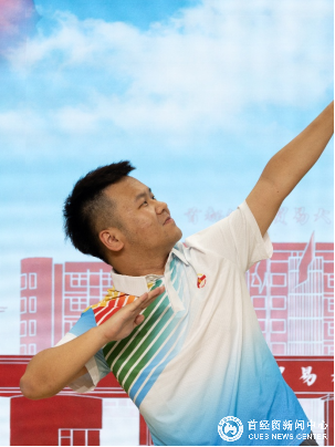 潘镜宇,工商管理学院团委书记,保障志愿者带队教师:面对上万名观众的饮水需求,同学们临危不乱、迎难而上、紧密配合,出色的表现赢得了指挥部的高度赞扬,首经贸成为了首批被指挥部表扬的高校之一,这份荣誉不仅仅属于饮水点志愿者,更属于全体首经贸人,为同学们点赞!