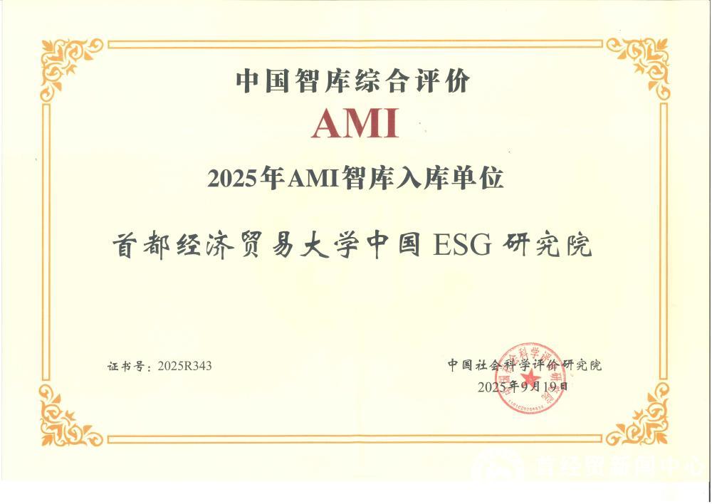 近日,由中国社会科学评价研究院主办的第八届中国智库建设与评价高峰论坛在北京举行,会上公布了2025年中国智库综合评价研究项目(AMI)评审结果。首都经济贸易大学特大城市经济社会发展研究院、北京数字经济发展研究院与中国ESG研究院等三家智库成功入选。