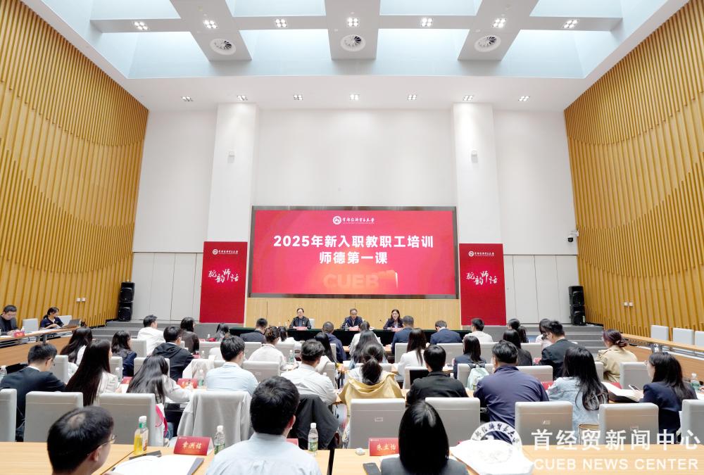 首经贸举行2025年新教工培训启动仪式 | 45名新“青椒”同上“师德第一课” 开启育人新征程10月15日,首都经济贸易大学2025年新入职教职工培训启动仪式在博远楼新闻发布厅举行。党委书记王文举,党委副书记、校长吴卫星出席启动仪式。党委副书记徐芳主持仪式。 王文举为新教工讲授职业发展暨“师德第一课”。王文举为新教工系统阐释了习近平总书记在全国教育大会上的重要讲话精神,解读了《教育强国建设规划纲要(2024—2035年)》和《北京市贯彻〈教育强国建设规划纲要(2024—2035年)〉的实施方案》等重要文件精神,同时结合学校未来发展战略和当前面临形势,强调了青年教师的使命担...部处-