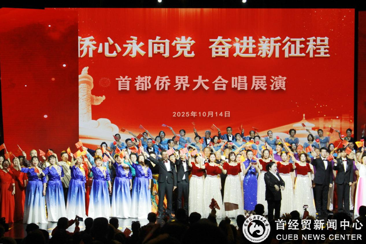 首经贸青春侨之声合唱团参加“侨心永向党 奋进新征程”首都侨界大合唱展演10月14日下午,“侨心永向党 奋进新征程”首都侨界大合唱展演活动在北京民族文化宫举行,来自首都各界的800余名侨界代表齐聚一堂。作为本次展演中唯一一所市属高校代表,首都经济贸易大学华侨学院“青春侨之声”合唱团与清华大学、北大大学合唱团同台演出,共同以合唱为纽带凝聚侨心侨力,用歌声表达听党话、跟党走,共赴新征程的坚定决心。本次活动由华侨学院党委副书记蔡丹担任领队。 青春侨之声合唱团,是承载华侨精神与校园文化的艺术团体。团内成员怀着对艺术的热爱与对家国的赤诚,在悠扬歌声中传递“回报...院系-