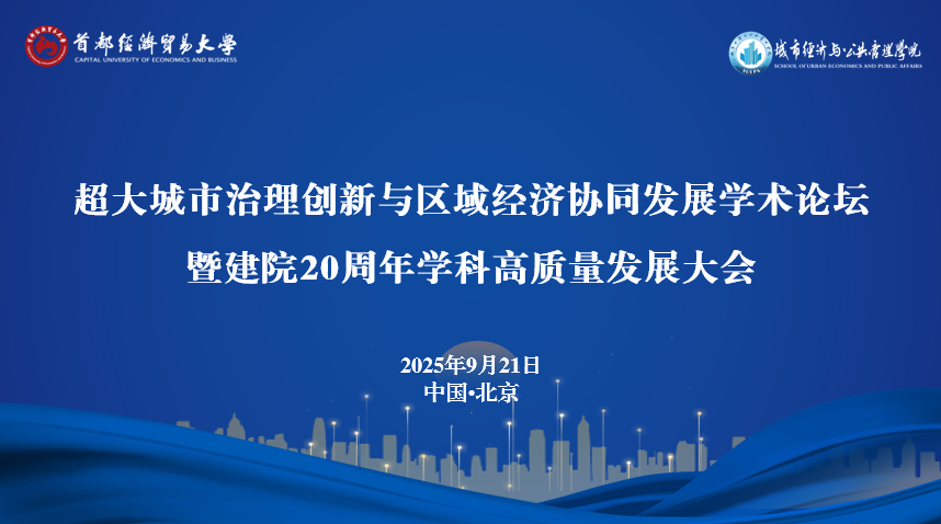 超大城市治理创新与区域经济协同发展学术论坛暨建院20周年学科高质量发展大会圆满举行9月21日,超大城市治理创新与区域经济协同发展学术论坛暨首都经济贸易大学城市经济与公共管理学院建院20周年学科高质量发展大会在首都经济贸易大学琢玉讲堂圆满举行。 首都经济贸易大学党委书记王文举教授,党委常委、副校长姚林修,学校原党委书记柯文进教授,国务院学位委员会公共管理学学科评议组联合召集人、武汉大学政治与公共管理学院丁煌教授,全国MPA教育指导委员会副主任委员、北京大学政府管理学院院长燕继荣教授等出...院系