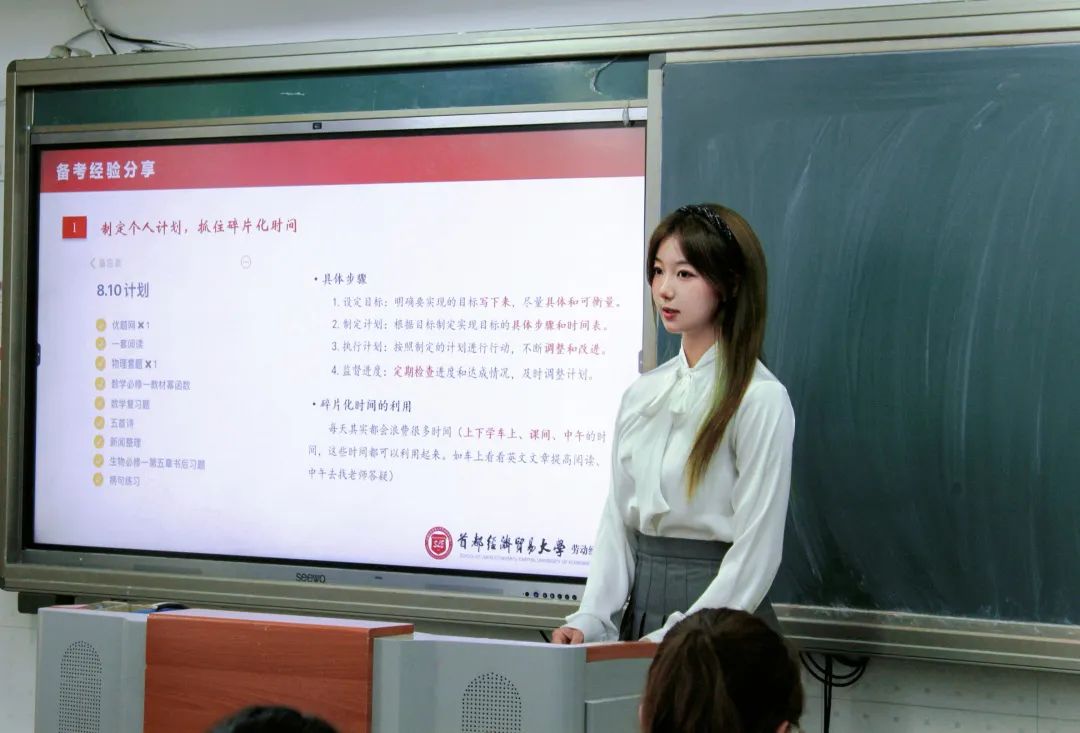 4月12日下午,春风和煦,绿意盈盈,首经贸劳动经济学院分团委赴北京市第十八中学开展宣讲交流活动。学院22级劳动经济学班团支部与北京十八中高三四班团支部以“逐梦青春 学长引航”为主题进行交流宣讲,向学弟学妹们介绍校院概况与专业设置,分享高考备考经验、考前调整心态的方法以及多彩的校园生活。