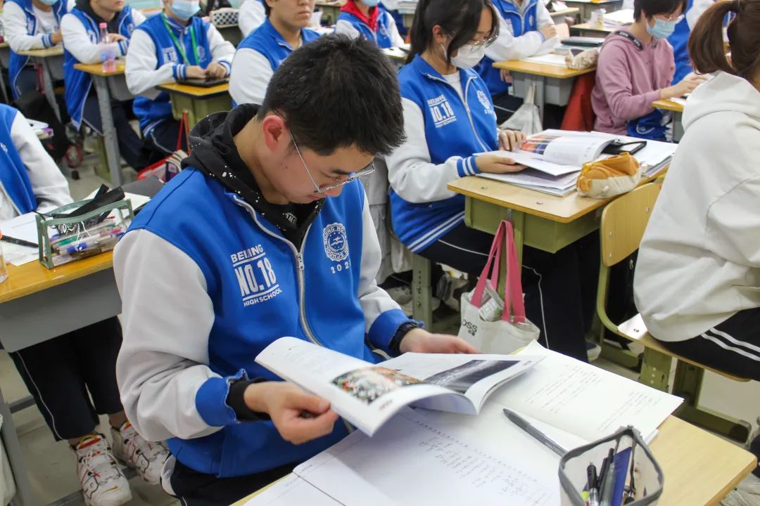 北京市第十八中高三年级主任甄兆敏、高三四班班主任井雪,劳动经济学院分团委副书记(主持工作)、兼职辅导员韩国晟,22级劳经班团支部书记刘芳利、文体委员战墨菡及高三四班全体同学参与活动。