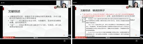 其中,孙泽钰对文献综述部分进行了深入讲解。孙泽钰强调文献综述不是简单的罗列,而是对文献进行“综”与“述”。“综”是对文献进行综合分析、归纳整理,“述”要求对综合整理后的文献进行专门的、全面的、深入的、系统客观的论述。
