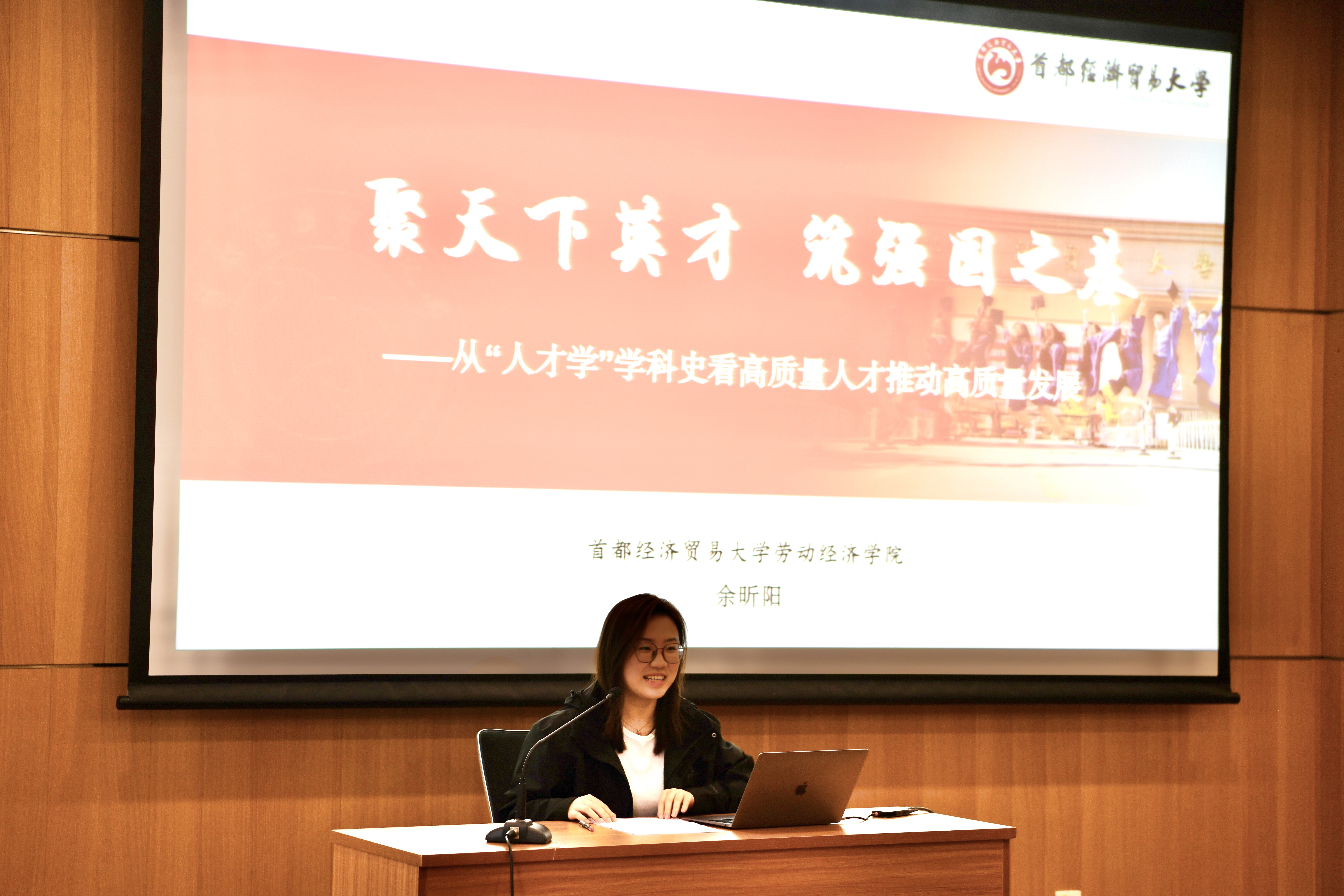 余昕阳以“聚天下英才,筑强国之基”为主题,从“人才学”学科史看高质量人才发展。她与大家一起回顾了“人才学”学科发展历程。不同历史时期,国人都会树立“聚天下英才而用之”的理念,既推动事业兴盛、更推动国之繁荣。从1978年邓小平同志提出“实现四个现代化,人才是关键”到2022年党的二十大报告指出“教育、科技、人才是全面建设社会主义现代化国家的基础性、战略性支撑”,不难发现人才学对国家、对社会的贡献有着深远的影响。她强调了党的二十大报告中关于人才论述的5个“首次提出”、6个“再次强调”、4个“新的变化”,这些都值得我们深入思考并贯彻落实。人才学专业的研究生,应该在对党的二十大报告不断解读和逻辑的理清中,研究真问题,服务于国家战略和首都建设,尽自己能力推动人才学科发展,用实际行动助力高质量发展推进中国式现代化。