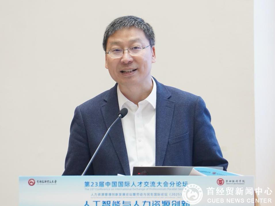 10月23日,人力资源管理创新发展论坛暨劳动与民生国际论坛在首都经济贸易大学博远楼新闻发布厅举办。论坛由首都经济贸易大学主办、劳动经济学院承办,作为第23届中国国际人才交流大会的分论坛,主题聚焦“人工智能与人力资源管理创新”,汇集来自中国、日本、加拿大和澳大利亚7所高校的专家学者,共同探讨人工智能时代人力资源领域的前沿议题。人力资源和社会保障部外国专家服务司司长聂生奎,首都经济贸易大学党委副书记、校长吴卫星出席开幕式。首经贸劳动经济学院党委书记何勤主持开幕式。