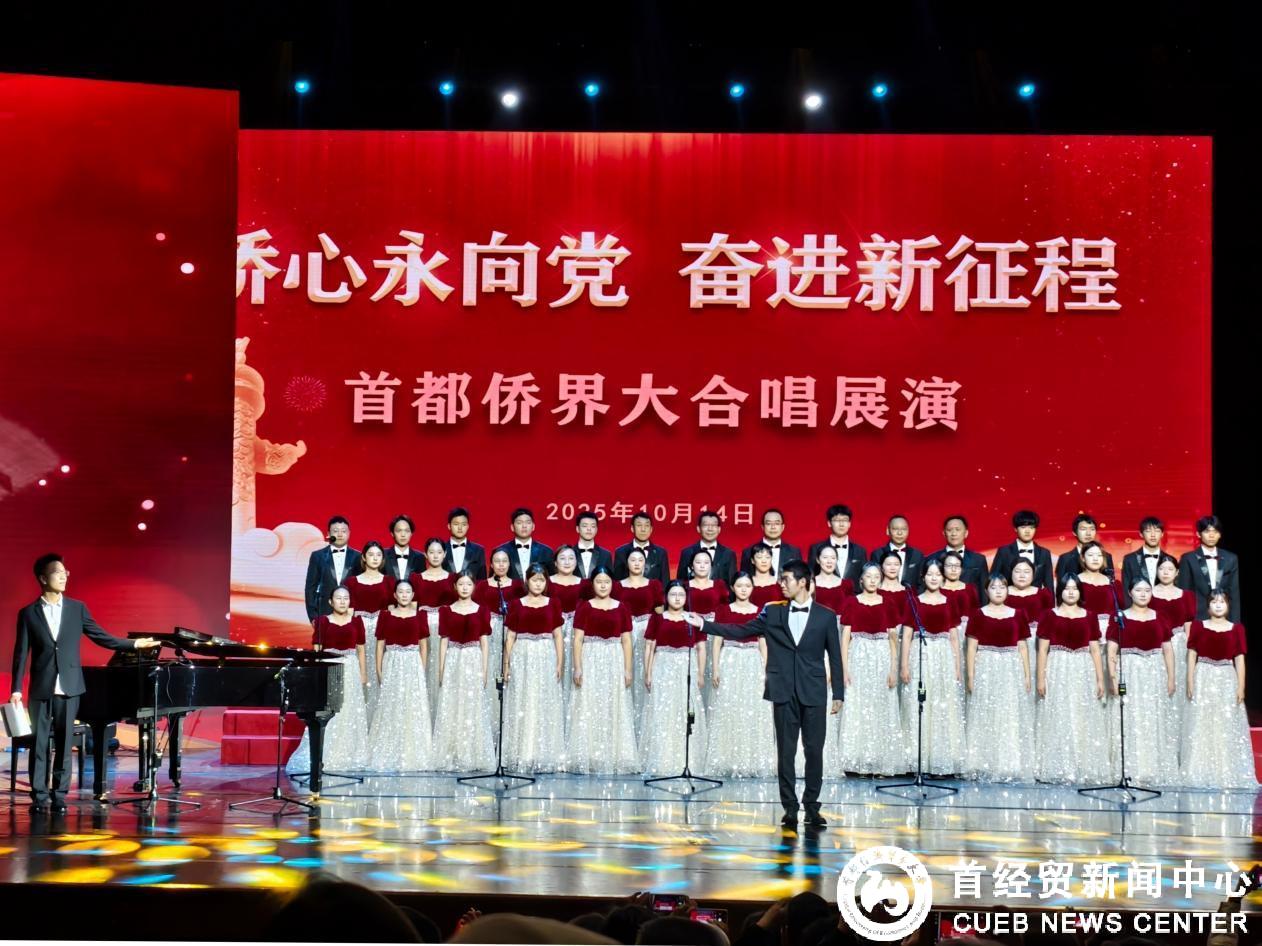 10月14日下午,“侨心永向党 奋进新征程”首都侨界大合唱展演活动在北京民族文化宫举行,来自首都各界的800余名侨界代表齐聚一堂。作为本次展演中唯一一所市属高校代表,首都经济贸易大学华侨学院“青春侨之声”合唱团与清华大学、北大大学合唱团同台演出,共同以合唱为纽带凝聚侨心侨力,用歌声表达听党话、跟党走,共赴新征程的坚定决心。本次活动由华侨学院党委副书记蔡丹担任领队。