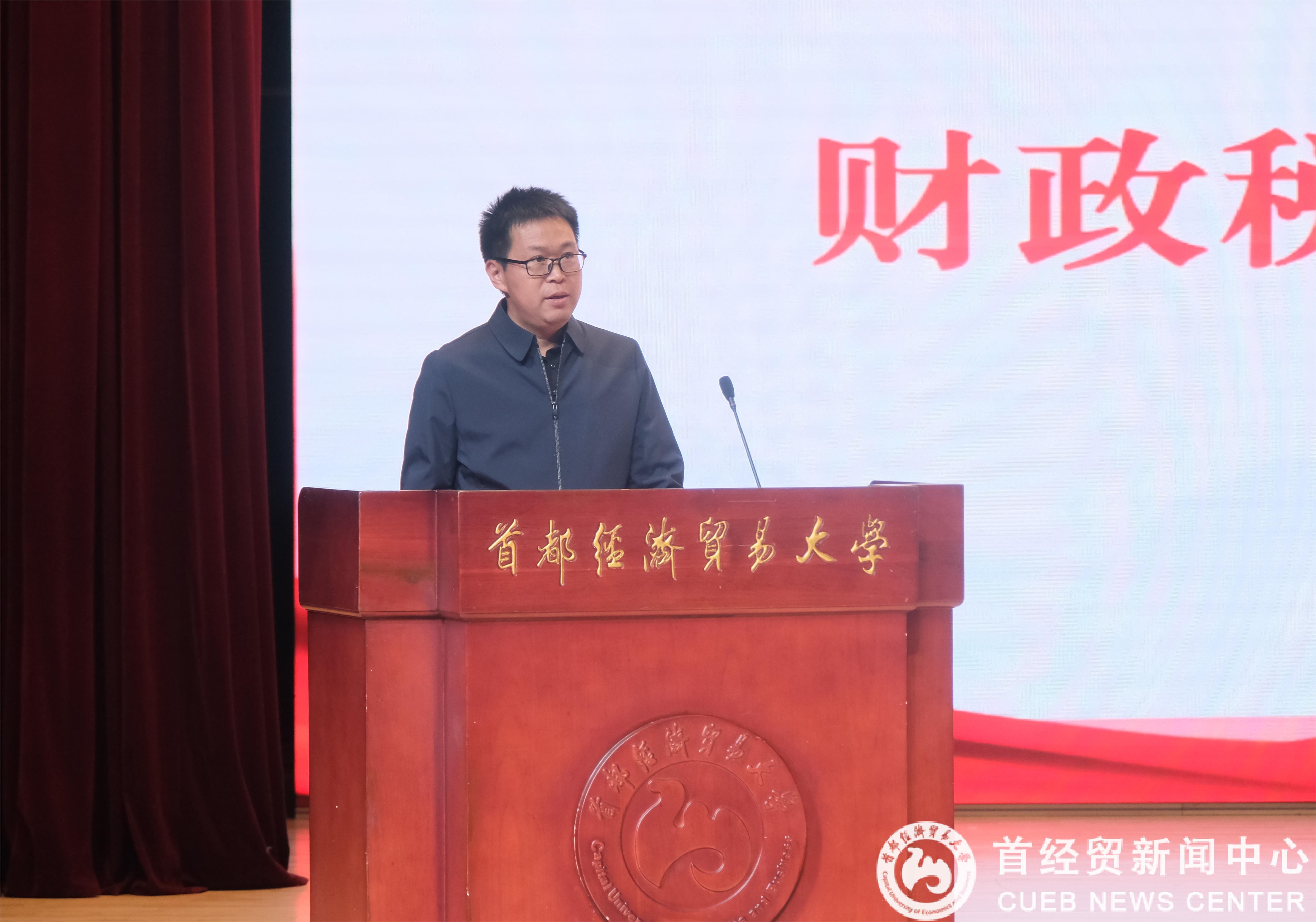 副院长何辉致辞,他着重强调了新学期对学院发展与学子成长的重要意义,系统梳理了学院的发展历程,详细介绍了实力雄厚的师资队伍、科研成果与育人理念,为新生们清晰勾勒出了充满机遇与挑战的大学生活蓝图。同时,何辉对新一批“财税人”提出殷切期望与明确要求,叮嘱同学们将初心与使命铭记于心、付诸行动,以追求卓越的信念与脚踏实地的作风,为实现个人全面成长与学校长远发展不懈奋斗。
