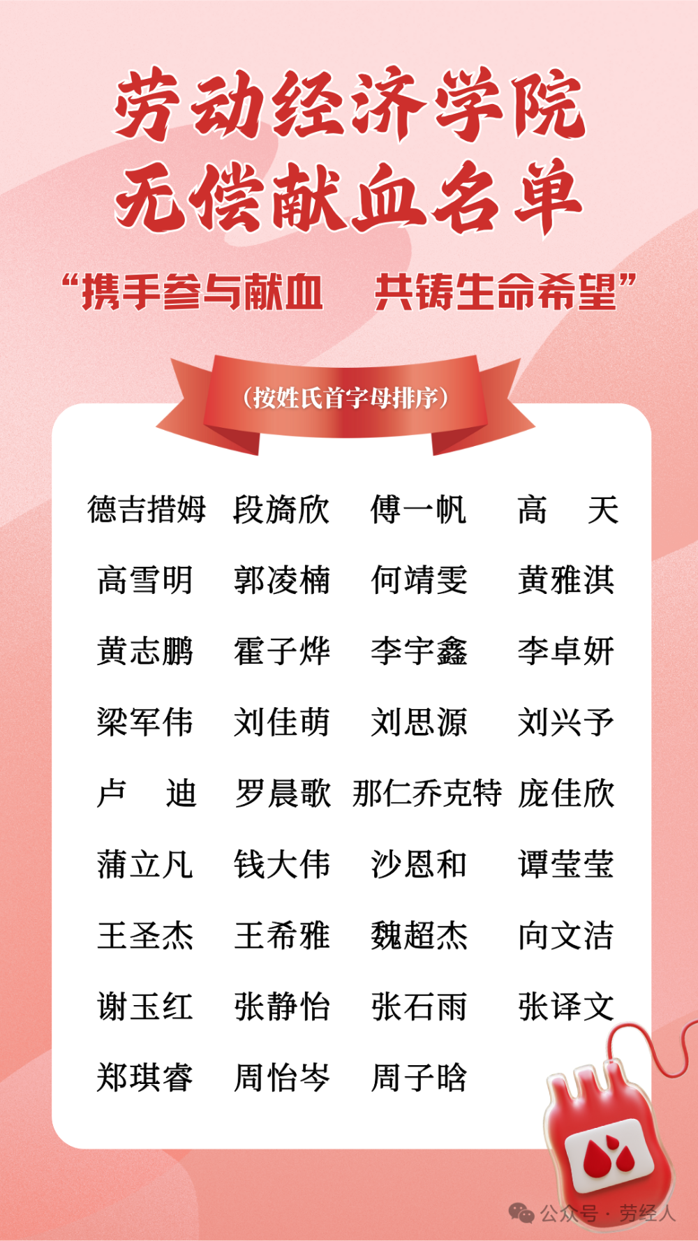 公益事事皆仁善,热血徐徐溢暖流。此次献血活动展现出劳经学子心系社会、关爱他人的责任担当,践行并弘扬了“奉献、友爱、互助、进步”的志愿精神。未来,希望有更多的同学能够积极投身献血活动,让青春在公益事业中绽放更加绚丽的光彩!
